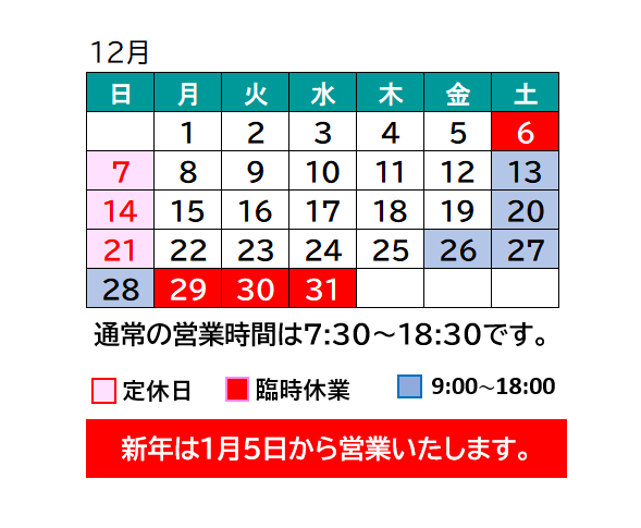 🟠12/28㈰は日曜日ですが臨時営業いたします。